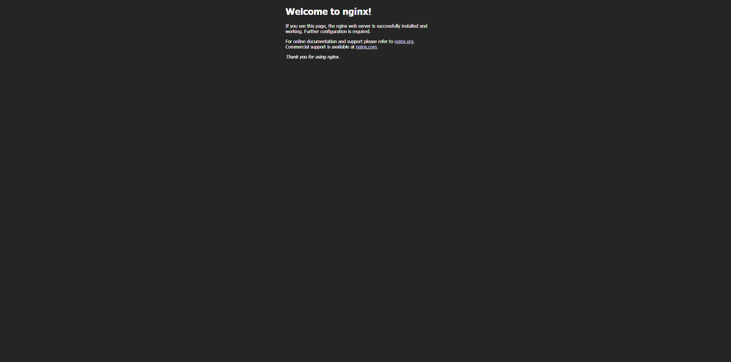 Now, if you go to http://localhost:8080 of the VM, you should see the default page of Nginx: